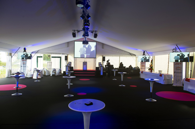 Le célèbre constructeur Lyonnais FONTANEL fêtait ses cinquante ans les jeudi 19 et vendredi 20 septembre derniers à Quincieu (69). L’agence For7, en charge de la création et de l’organisation de cette manifestation, a fait appel à Meetings pour assurer le soutien logistique de ces deux soirées qui ont rassemblé plus de 1 000 personnes : visite de chantiers miniatures, arrivée des dirigeants en 404 d’époque, projection sur la façade du siège social… Meetings a « construit » sur mesure 500 m2 de structures avec moquette, plancher, et plafond tendu en vélum, scène en escaliers, bar lumineux, espace VIP…