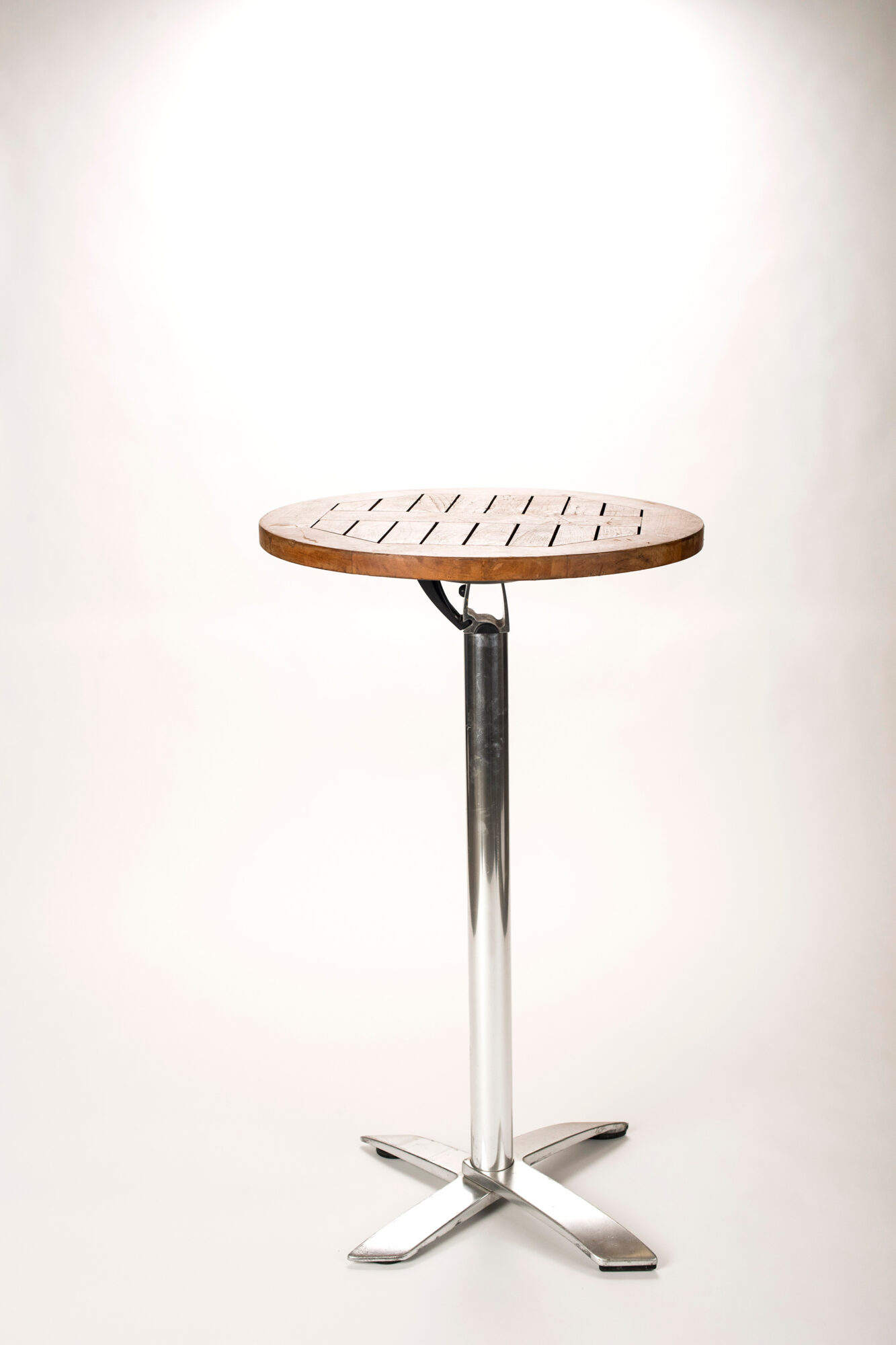 Avec son aspect boisé et sa forme ronde, le Mange debout Teck rond est un indémodable et s'intègre à chaque événement très simplement.