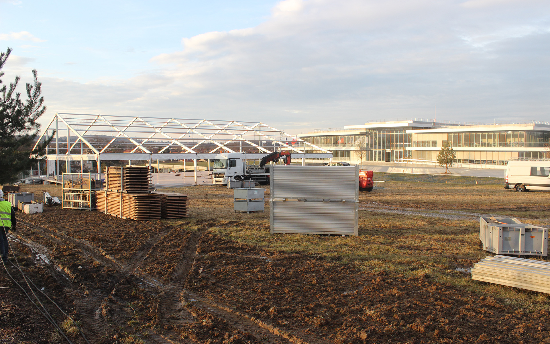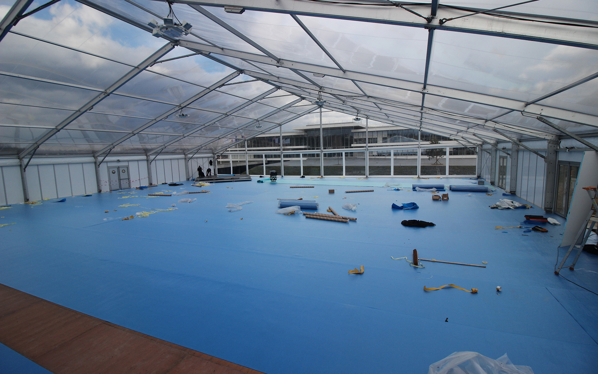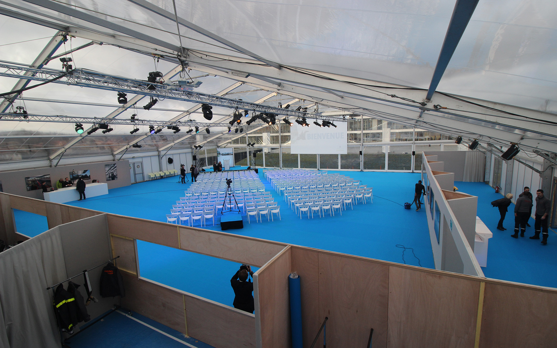 Inauguration Campus de l'etoile BIOMERIEUX avec le montage du chapiteau fait par Meetings